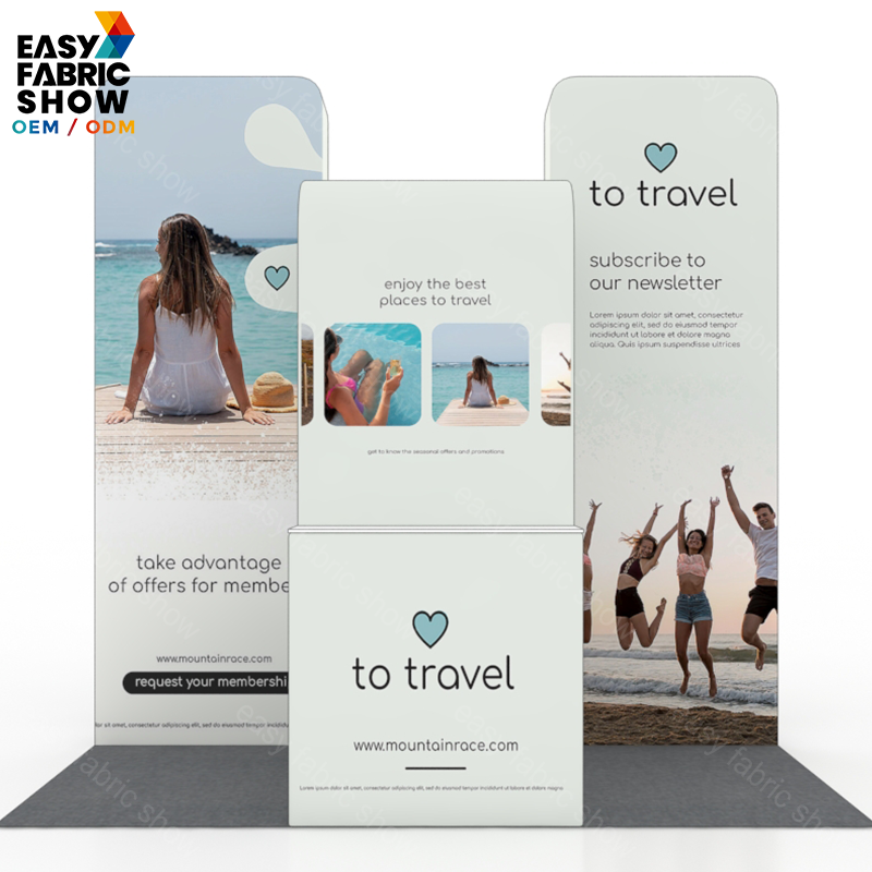 • Customizable fabric prints to match your branding, messaging, or promotional content