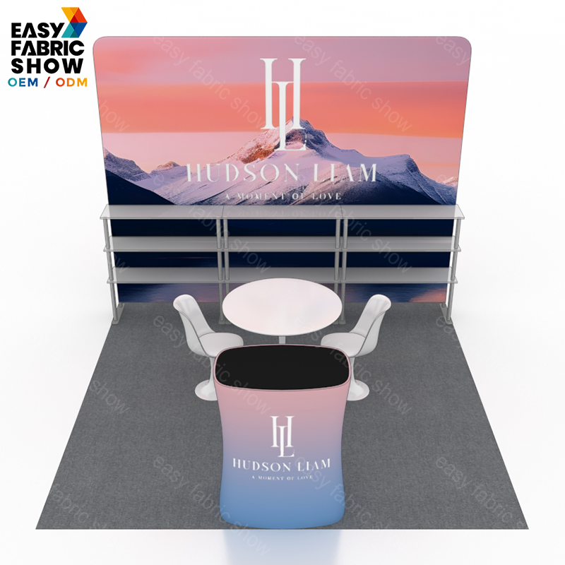 This 3x3m aluminum frame booth features a sturdy and lightweight structure ideal for versatile exhibition setups. Equipped with a multi-layer shelf, it offers efficient storage and display options to organize materials neatly and accessibly. Designed for quick assembly and durability, this booth supports professional presentations while optimizing space usage. Perfect for trade shows, retail events, and promotional activities requiring reliable and functional booth solutions.