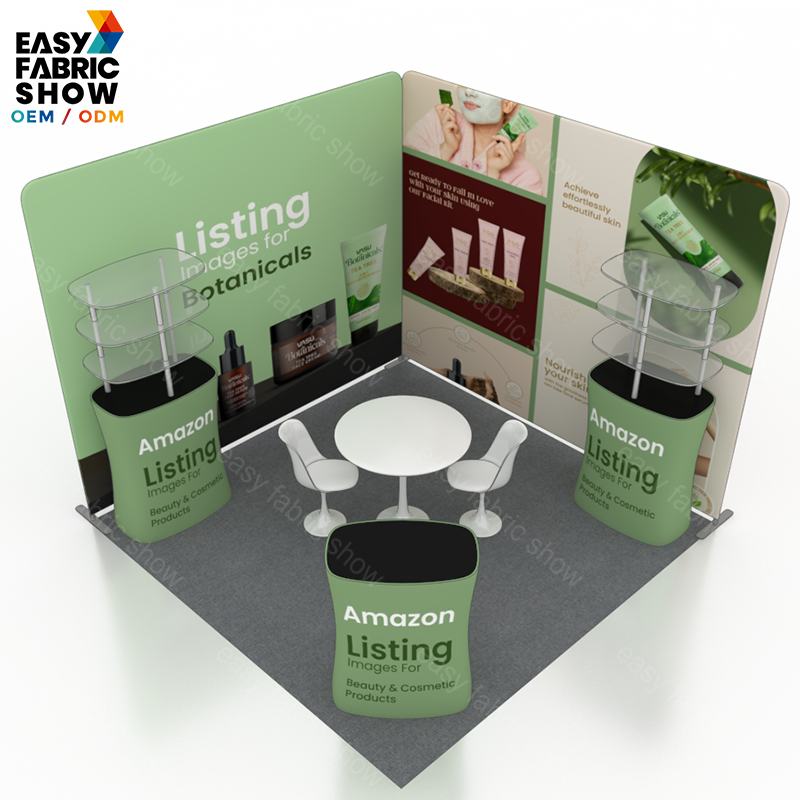 This 3x3m aluminum frame booth features a sturdy and lightweight structure ideal for versatile exhibition setups. Equipped with a multi-layer shelf, it offers efficient storage and display options to organize materials neatly and accessibly. Designed for quick assembly and durability, this booth supports professional presentations while optimizing space usage. Perfect for trade shows, retail events, and promotional activities requiring reliable and functional booth solutions.