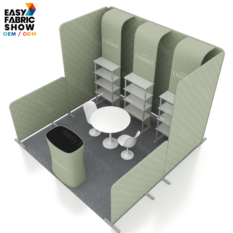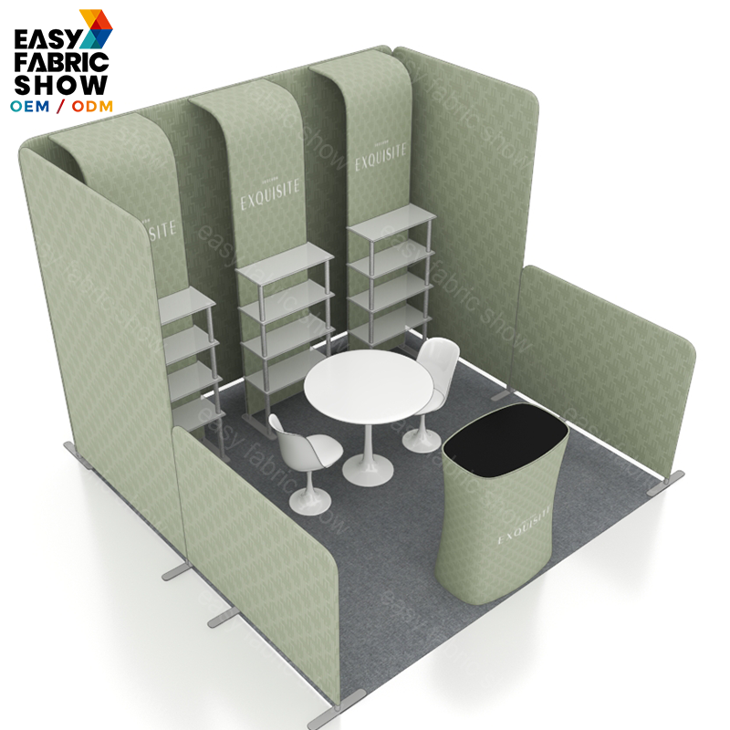 This 3x3m aluminum frame booth features a sturdy and lightweight structure ideal for versatile exhibition setups. Equipped with a multi-layer shelf, it offers efficient storage and display options to organize materials neatly and accessibly. Designed for quick assembly and durability, this booth supports professional presentations while optimizing space usage. Perfect for trade shows, retail events, and promotional activities requiring reliable and functional booth solutions.