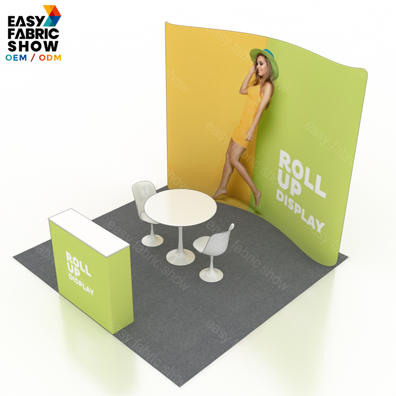 This 3x3 meter custom-printed exhibition booth features a curved background designed to maximize visual impact and create an inviting space. Tailored to your brand’s unique graphics, it offers a seamless, professional appearance ideal for trade shows and events. The curved design enhances visibility from multiple angles, helping to attract and engage visitors effectively. Durable materials ensure reliable use across multiple exhibitions, providing a high-quality solution for showcasing your products or services.
