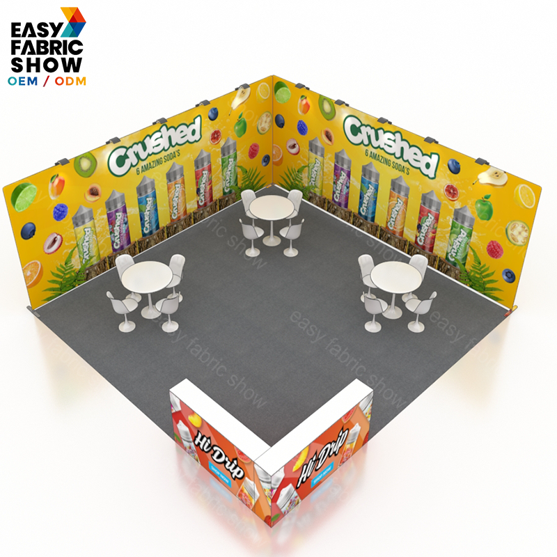 The 6x6 meter aluminum frame booth offers a robust and lightweight structure tailored for professional exhibitions. Equipped with integrated spotlights, it enhances product visibility and creates an inviting atmosphere, ensuring your display stands out. Its modular design allows for straightforward assembly and customizable configurations, making it an ideal choice for dynamic trade show environments.