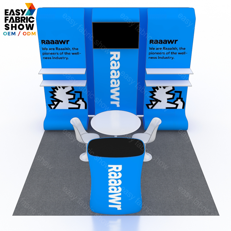 3*3m Aluminum Frame Booth with Fabric Panels, Integrated TV Mount & Shelving